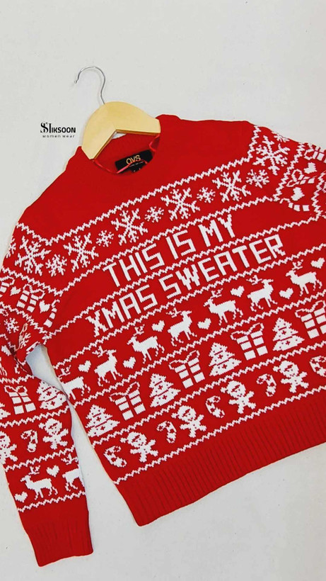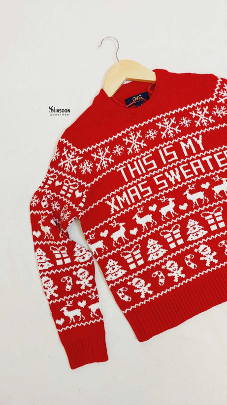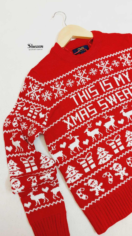 بلوز بافت زنانه کریسمسی طرح بیسکویت زنجبیلی و کادو
