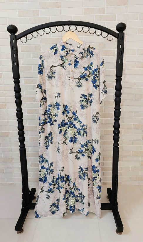 📌تمام نخ (فقط طرح یاسی با گل آبی کرپ حریر )